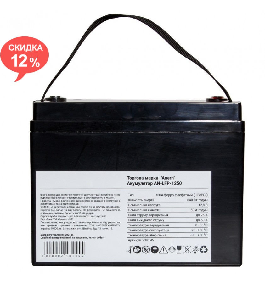 Емкость: 50 Ач. (640 Вт/час)